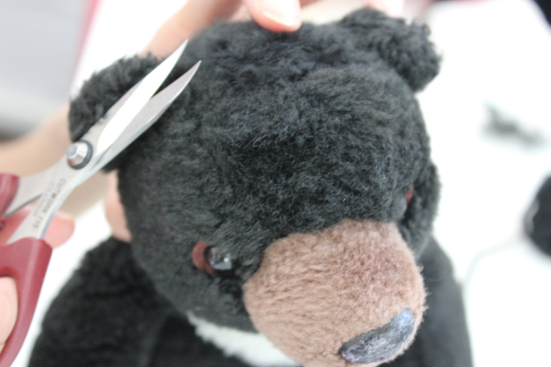 今回は、クマの毛色に近い毛糸を選び、元の毛並みになじむよう加工したうえで植毛を行いました。