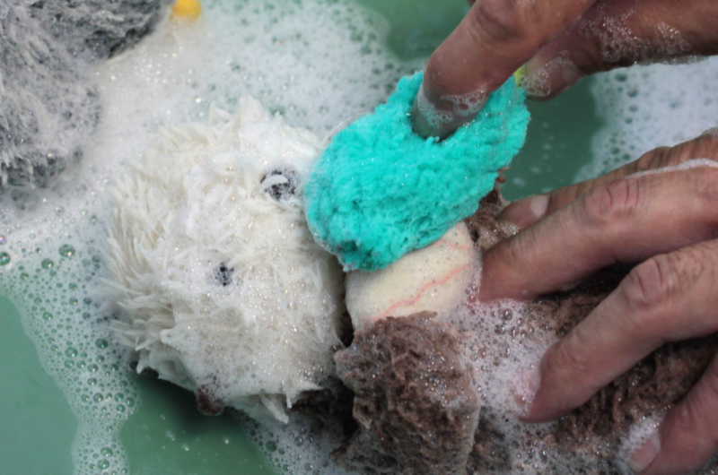 1体ずつ職人が手洗いするからこそ、顔まわりや縫い目、汚れがたまりやすい部分、毛の奥に入り込んだ汚れや黒ずみまで丁寧に落としていくことができます。