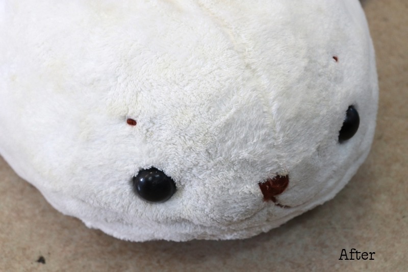 お顔に付いていた茶色い汚れが落ち、白さが戻りました。