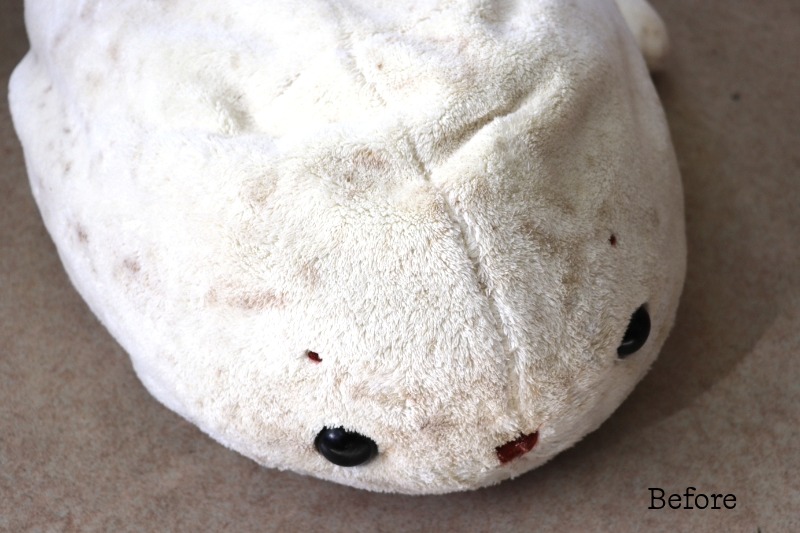 白いぬいぐるみは、手で触れる回数が多いお顔まわりに皮脂や手汗が付着しやすく、「気がついたら汚れてた…」ということもあります。