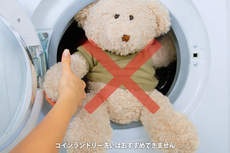 「コインランドリーなら洗えるのでは」と思う方もいらっしゃいますが、ぬいぐるみは強い回転や水流で負担がかかりやすいため、注意が必要です。