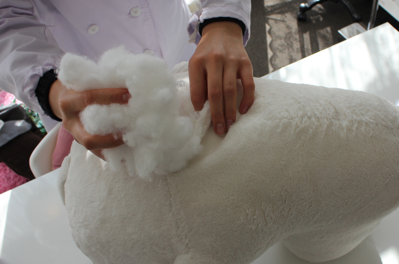 新しい中綿を詰めています。